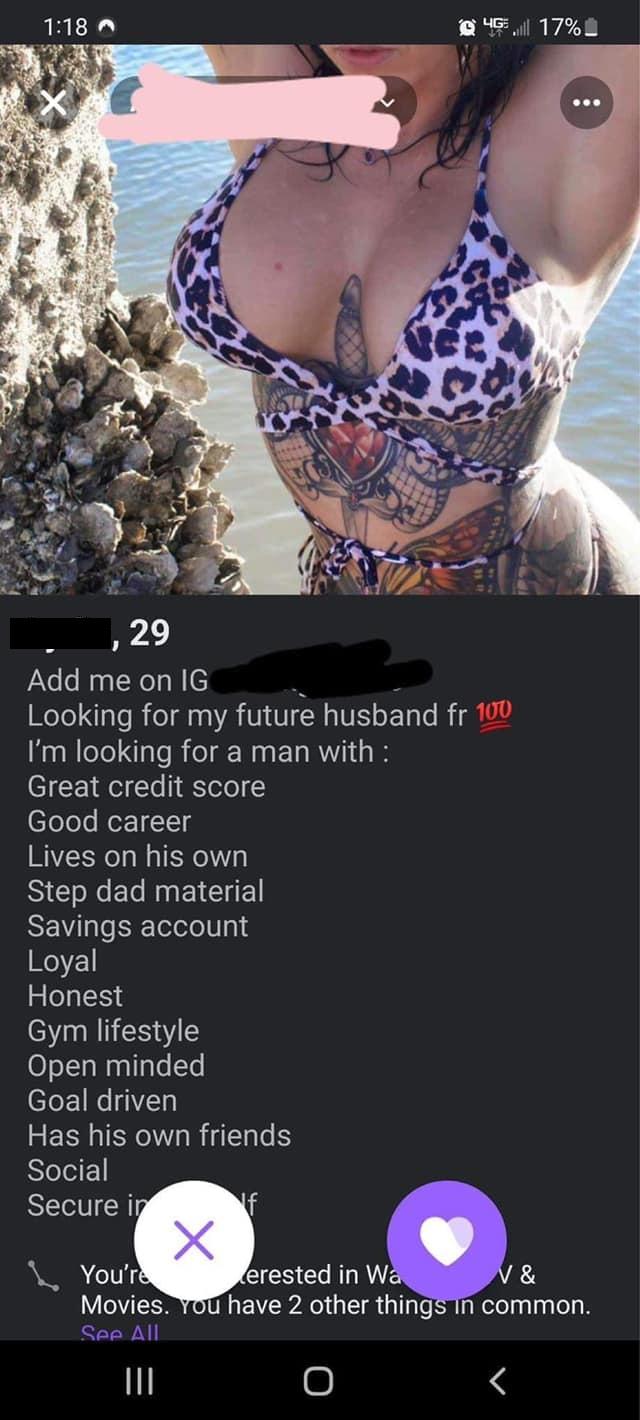 Dating profiles showing women's Dual-Mating strategy and unreasonable standards