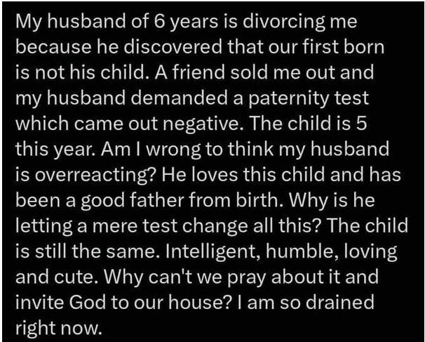 Fooled him for 5 years, then finds out child is not his. I can’t understand why he is upset? Why are men so self-centered? (www.forums.red)