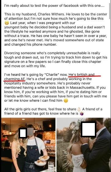 How come these never come with details about why the man ghosted? Are we supposed to believe this guy just up and decided to abandon his wife and kids? The guy has a hot blonde with long hair and no tats. Committed.