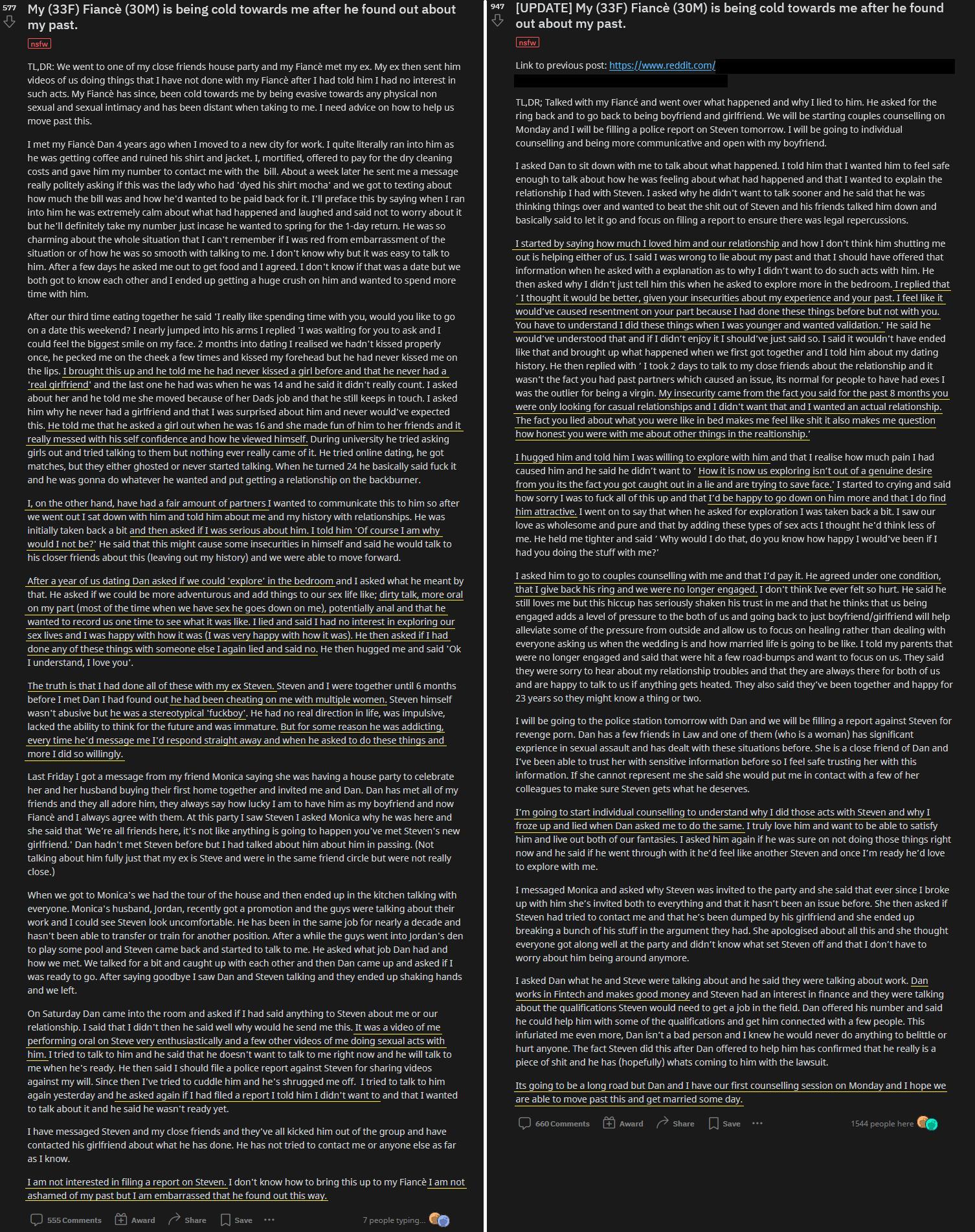 I don't see how Steven did anything wrong here. He has a right to free speech. He told Dan about his fiancee's true past. He didn't post to the internet. He communicated directly with Dan. So how do we get to revenge porn from that?