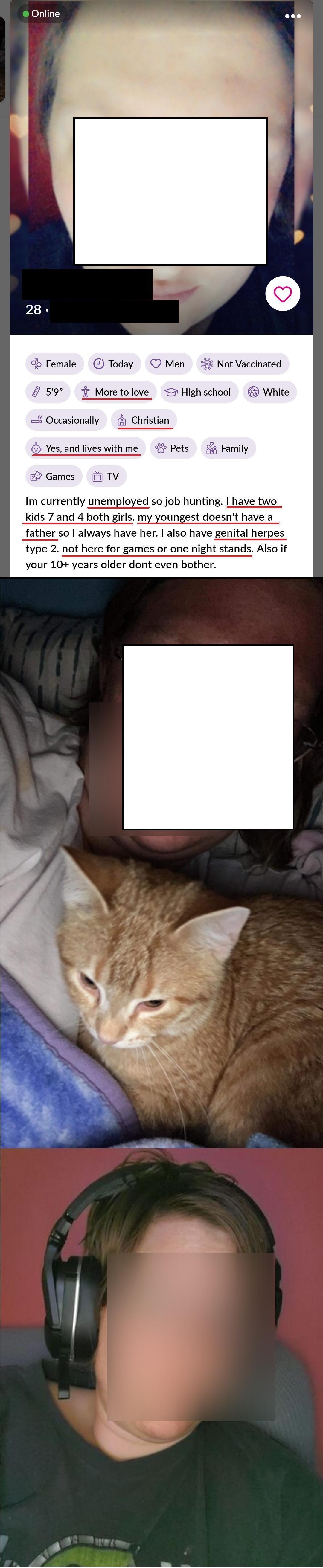 6. No personal information in dating profiles or social media accounts. Take a screenshot and censor all names, social media, hometown, school, and place of work. Additionally, censor any children's faces if their mommy included them in any profile photos.