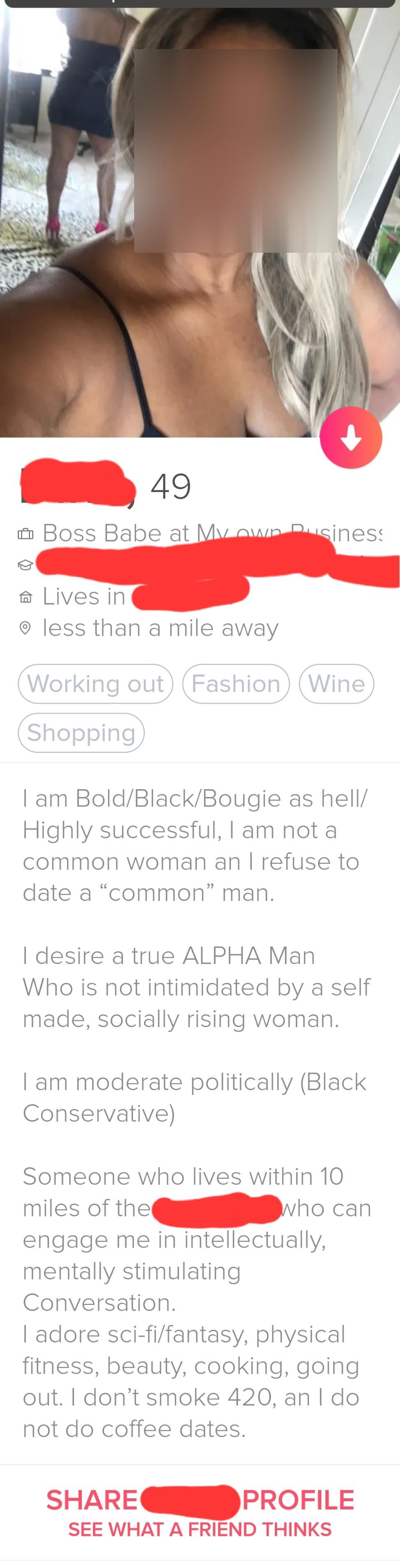 Yeah I'm sure some financially well off top tier male can't wait to date a menopausal broke fatass "Classi" womyn with a shitty weave, shittier attitude, and delusions of adequacy who can't even write a profile without telling multiple easily detectable lies.