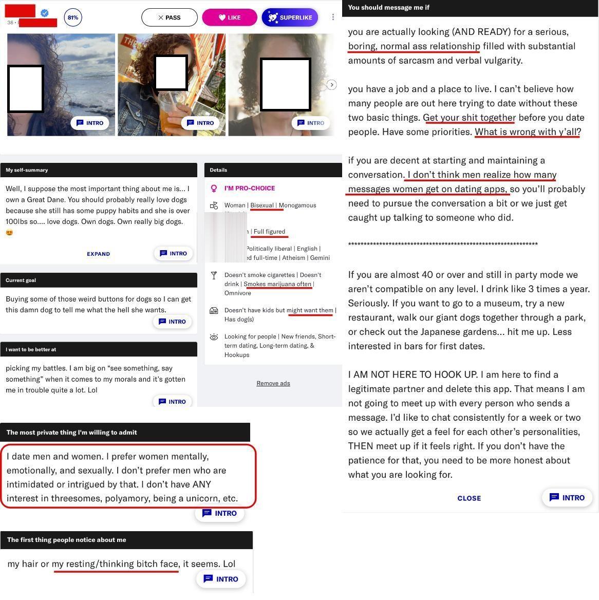 I'm confused..... she says she prefers women mentally, emotionally and sexually, but she's trying to meet a man on here who will court her for weeks before meeting up?