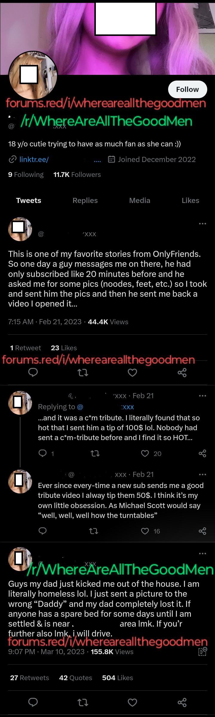 Here's a place to see a shit ton of women advertising "that they are in a socially weak position" (when he isn't shilling his other accounts/channels/platforms).