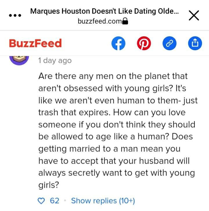 Lets unpack that. She's implying that because of the fact that men only want young women (she calls them girls, which is sexist if you say it as man, like literally enough to have you dismissed from the workplace) she is considering NOT getting married. She's trying to fool herself (and her readers) that she has a choice about whether to get married or not. She's basically saying, because all men are paedophiles, I'm considering not getting married at all. Let that sink in. She is looking around for justifications to explain away the truth that she has realised on a subconscious level (that she will not be getting married), but is trying to process on a conscious level.