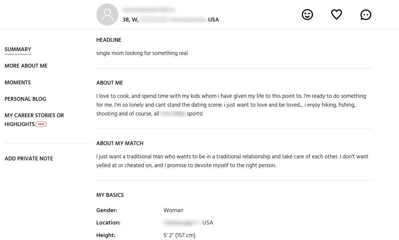 • 6. No personal information in dating profiles or social media accounts. Take a screenshot and censor all names, social media, hometown, school, and place of work. Additionally, censor any children's faces if their mommy included them in any profile photos.
