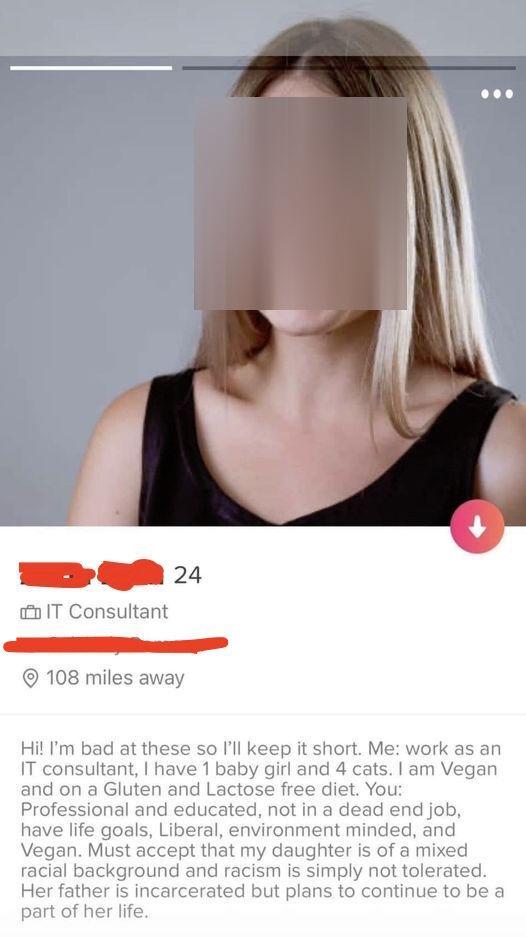 "I want an honest, forthright, gentleman that is woke and cares about women's rights and the environment" then breeds with and births Ray Ray the Shotcaller's kid who is currently doing a nickel in Soledad for running drugs near school grounds and beat the sentencing enhancement in exchange for a plea deal.