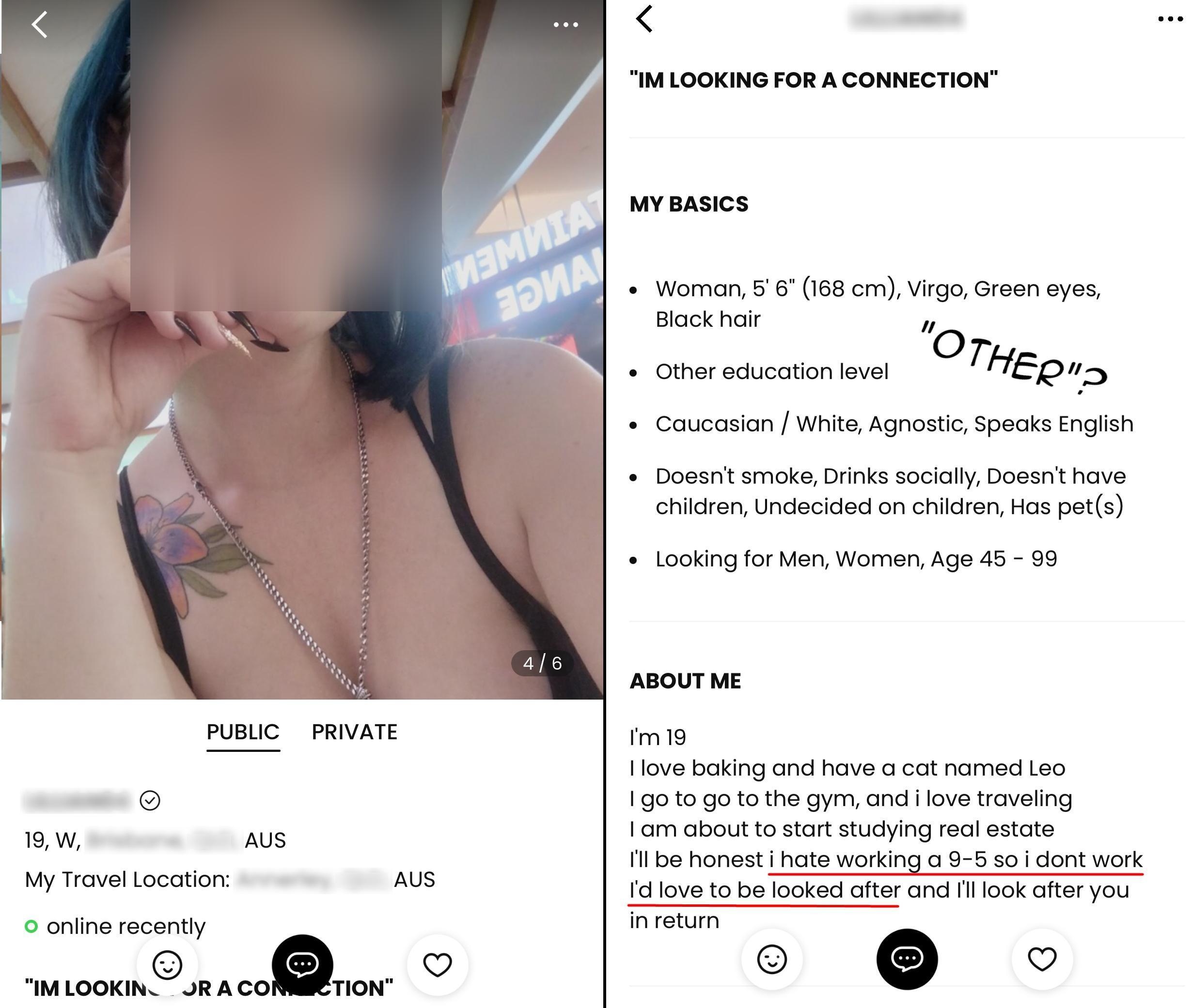 6. No personal information in dating profiles or social media accounts. Take a screenshot and censor all names, social media, hometown, school, and place of work. Additionally, censor any children's faces if their mommy included them in any profile photos.