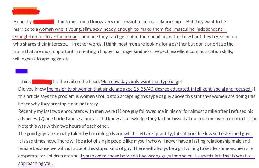 The reason women end up here is because their behavior is not exposed as the lucid, self-destructive, feminist ideology that it is. And we're here to help Good Men guard their commitment and resources by exposing women who would make poor life partners and mothers of their children. Providing observations and opinions on the posts here allows us to better understand women's psyche and later depressive/miserable state when they are not held to a moral standard required for healthy, functioning relationships.