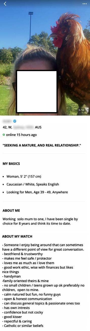 When she says “single by choice for 8 years and think its time to date”, is she one of the increasing number of women who get sperm donors because their biological clock is running out? Doing the math, that sounds like she was about 33 when she became single “by choice”. Now after 8 years, she’s putting herself on the market for some lucky man who meets all of her “standards”!