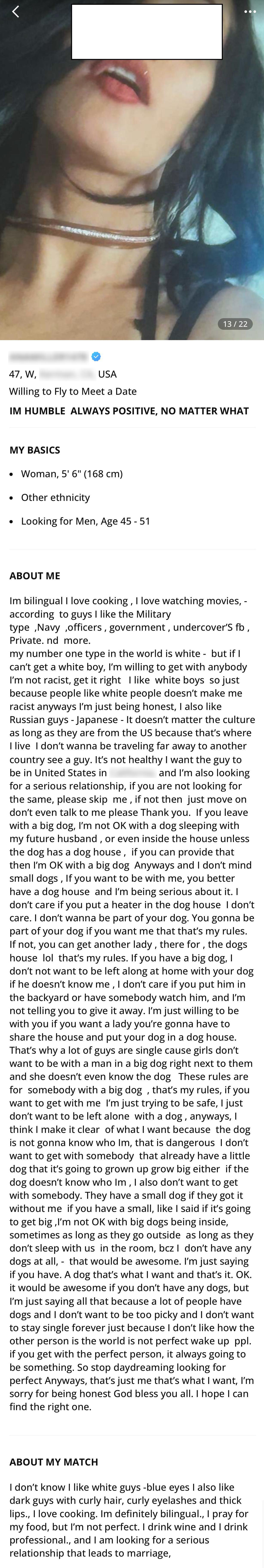 6. No personal information in dating profiles or social media accounts. Take a screenshot and censor all names, social media, hometown, school, and place of work. Additionally, censor any children's faces if their mommy included them in any profile photos.