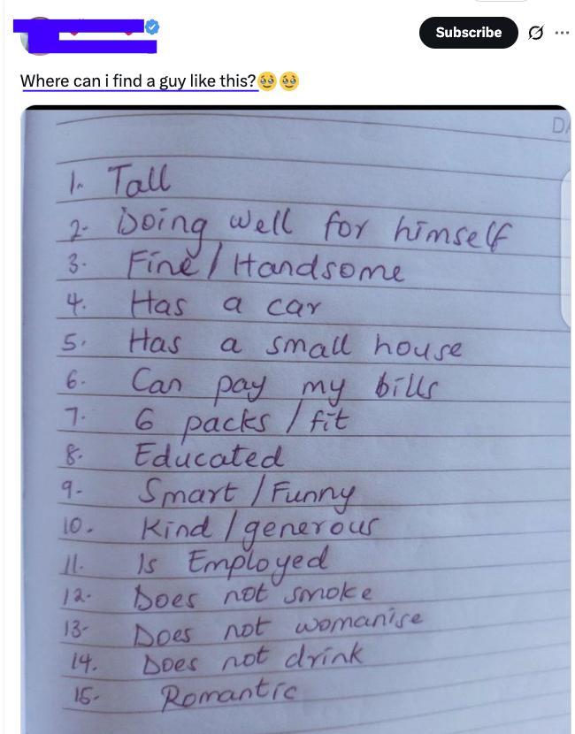I'm so glad you wrote it down, now you can "manifest" this imaginary man into existence with the sheer power of your feminine mind!